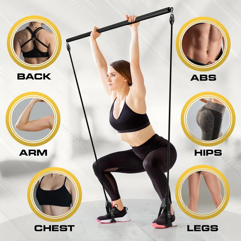 Lo genial de este sistema es su versatilidad y portabilidad. Las 3 secciones de barra se desarman completamente para facilitar el transporte y almacenamiento. Podés hacer ejercicios de fuerza, tonificación, rehabilitación, yoga y pilates. El anclaje para puerta te permite fijar las bandas de forma segura y ampliar las opciones de ejercicio. Las bandas de TPE destacan por su resistencia y suavidad al tacto. Son antialérgicas y libres de olores, brindando una experiencia de entrenamiento cómoda y segura para todos los usuarios, incluso aquellos con sensibilidad al látex.