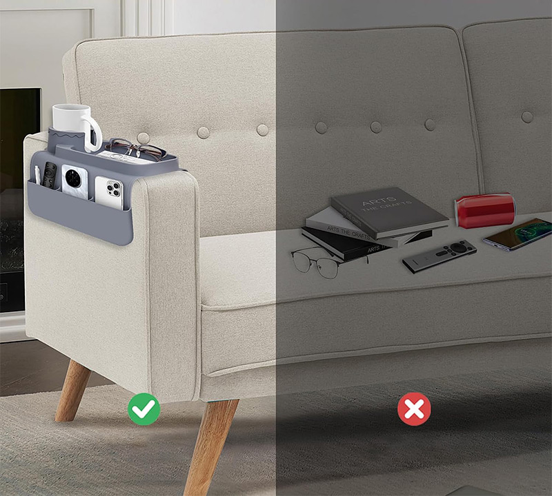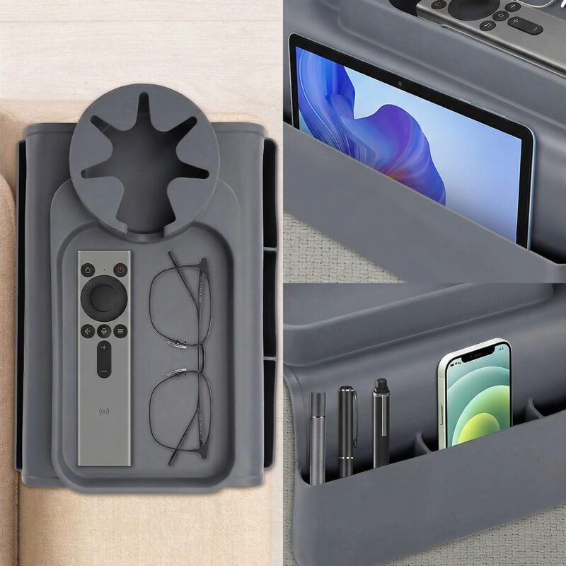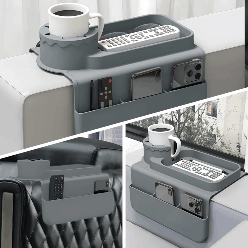 ¿Te pasa que siempre tenés cosas tiradas por el sillón y nunca encontrás nada? Este organizador es la solución que estabas buscando. Su diseño inteligente incluye portavasos con soporte antiderrame, compartimentos para el celular, control remoto, anteojos, cargador y todo lo que necesitás tener cerca.