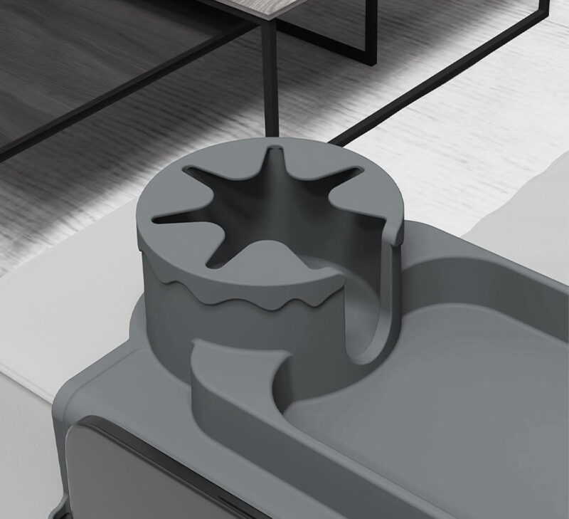 - Diseño antiderrame – Portavasos con forma que previene accidentes