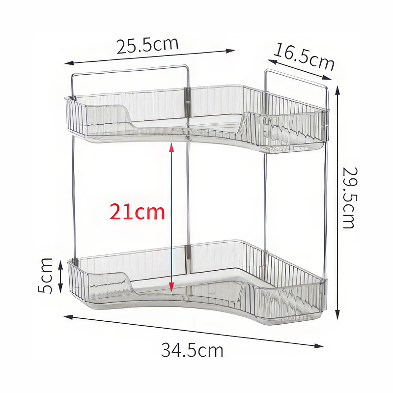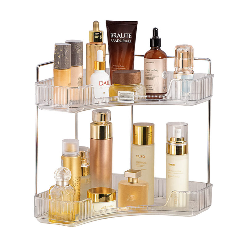 ¿Te cansaste de tener todos los productos de belleza desparramados por la mesada? Este organizador resuelve el problema de una vez. Su forma triangular está pensada especialmente para esquinas, aprovechando esos espacios que generalmente no usamos. Los dos niveles te dan lugar para separar productos por tipo: cremas abajo, maquillaje arriba, o como más te convenga.