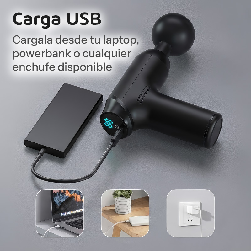 Liberá la tensión muscular y acelerá tu recuperación con esta pistola de masaje profesional que cabe en la palma de tu mano. Con 32 niveles de intensidad y pantalla LCD inteligente, es como tener un masajista personal disponible las 24 horas. Perfecta para deportistas, personas que trabajan largas horas frente a la computadora, o cualquiera que sufra de tensiones musculares.