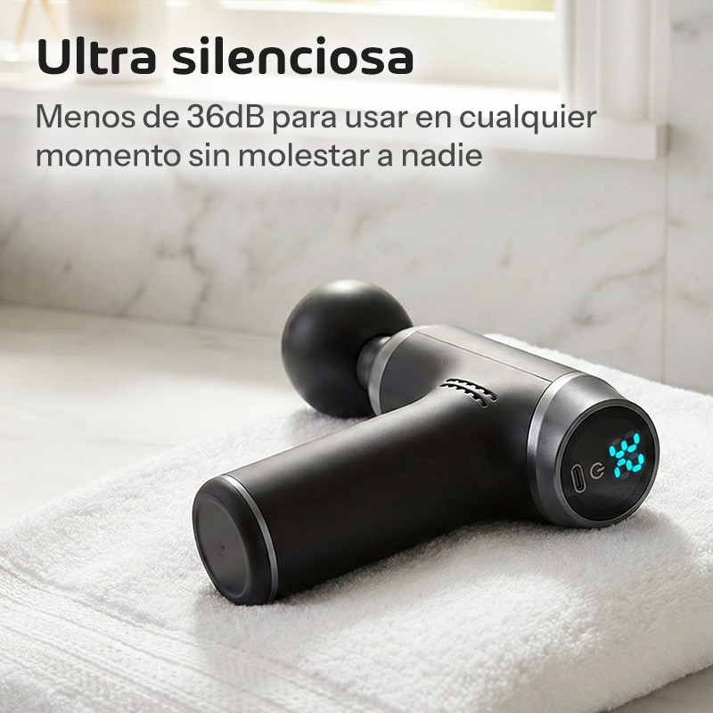 La pantalla LCD te muestra exactamente en qué nivel estás trabajando, para que puedas repetir la intensidad perfecta cada vez. El diseño ergonómico y ultraliviano hace que puedas usarla sin cansarte, incluso en sesiones largas. Y con menos de 36 dB de ruido, podés usarla en cualquier momento sin molestar a nadie.