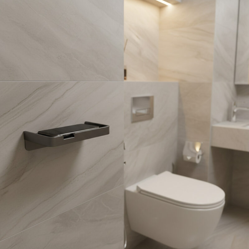 Ahora podés apoyar el celular de forma segura mientras estás en el baño. Su diseño inteligente con bordes elevados protege tu teléfono de caídas accidentales, y la superficie plana es perfecta para cualquier tamaño de smartphone.
