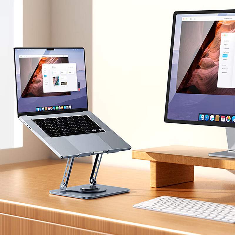 Mejorá tu espacio de trabajo con este soporte premium de metal que cambia tu manera de usar la notebook o tablet. Su diseño inteligente combina funcionalidad, durabilidad y estética moderna para brindarte la mejor experiencia de trabajo y entretenimiento.