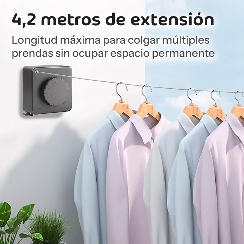 - Extensión máxima – Hasta 4,2 metros de longitud útil para múltiples prendas