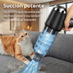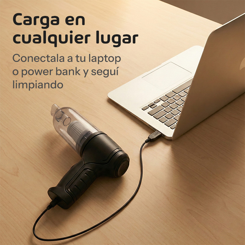 La potencia de succión de hasta 12000Pa es impresionante para algo tan compacto. Levanta desde pelos de mascotas hasta tierra húmeda, y el motor de 35500 rpm garantiza una limpieza exhaustiva. La batería de 2000mAh te proporciona autonomía suficiente para limpiar todo el auto y continuar con la casa.