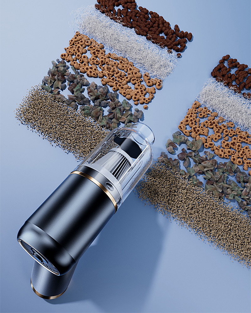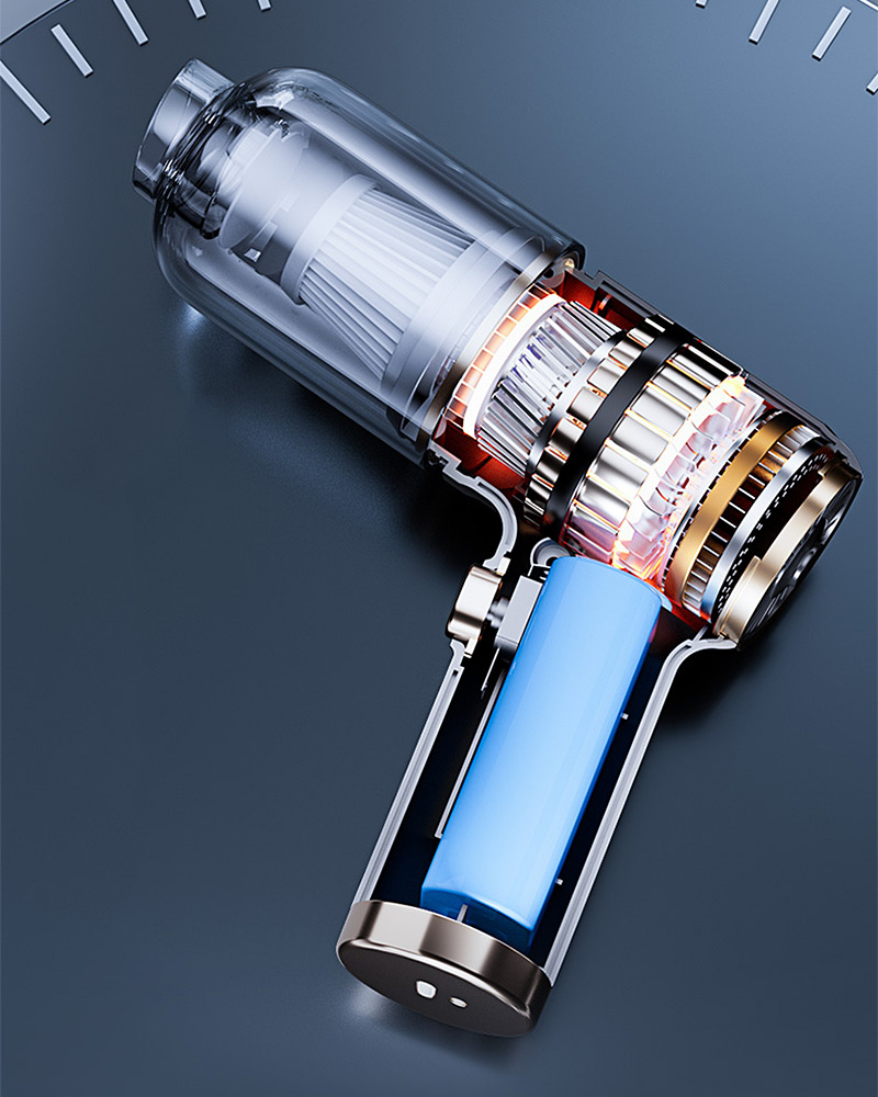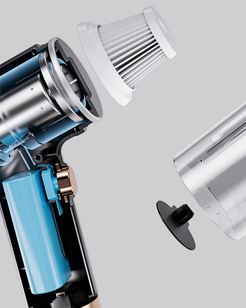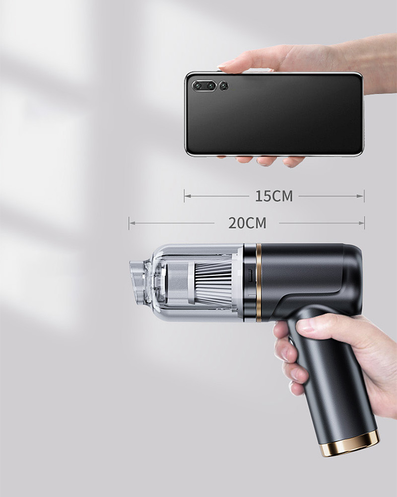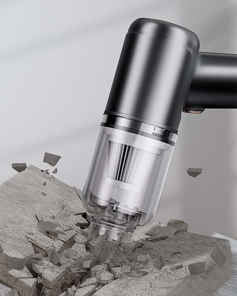 El diseño desmontable facilita el vaciado del depósito de manera higiénica. Su construcción compacta (18 x 16 x 6,3 cm) y liviana (385 g) la hace perfecta para llevar en el auto, manteniendo la potencia de una aspiradora grande. La carga rápida USB-C permite usarla en cualquier momento y lugar.