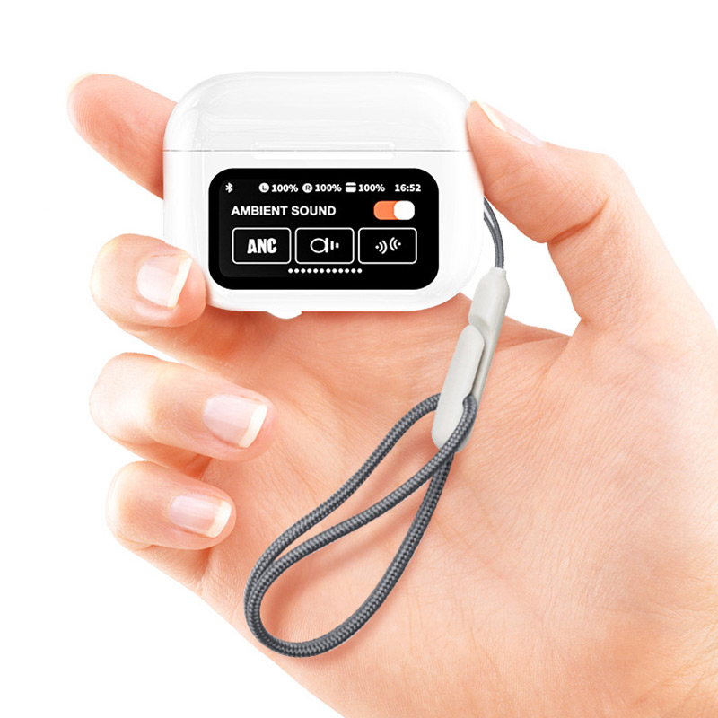 La pantalla LCD a color en el estuche es completamente funcional y táctil, permitiéndote controlar reproducción de música, ajustar volumen, cambiar modos de sonido (música, gaming, películas), activar/desactivar ANC, configurar ecualizador, cambiar fondos de pantalla, ajustar idioma, buscar tus auriculares si los perdés, tomar fotos remotas, ver la hora y mucho más, todo sin sacar el celular. Una innovación que cambia totalmente cómo interactuás con tus auriculares.