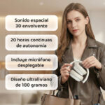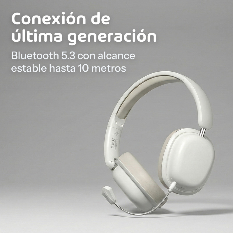 Su principal ventaja es la doble conectividad. Funcionan de forma inalámbrica vía Bluetooth con conexión estable hasta 10 metros, pero también incluyen cable auxiliar de 3,5 mm para usar sin batería cuando lo necesités. El micrófono desplegable incorporado es perfecto para llamadas, videollamadas o chat de voz en juegos, y se pliega discretamente cuando no lo usás.