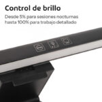 Con control infinito de brillo ajustás la intensidad perfecta para cada situación. Desde 5% para sesiones nocturnas hasta 100% para trabajo detallado. El control táctil responde al instante y la memoria guarda tu configuración favorita.