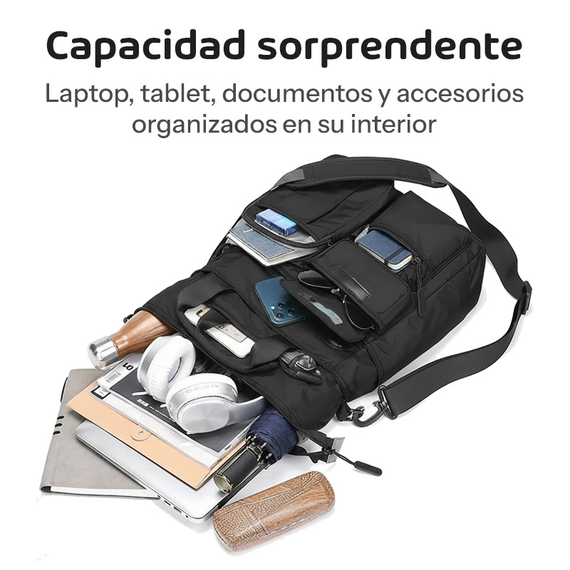 Lo que más te va a impresionar es su capacidad real. A pesar de mantener un perfil elegante, entra una laptop de hasta 15,6 pulgadas, documentos A4, tablet, auriculares, cargadores, documentos importantes y todos tus accesorios de trabajo. Los compartimientos están pensados estratégicamente para que cada cosa tenga su lugar perfecto.