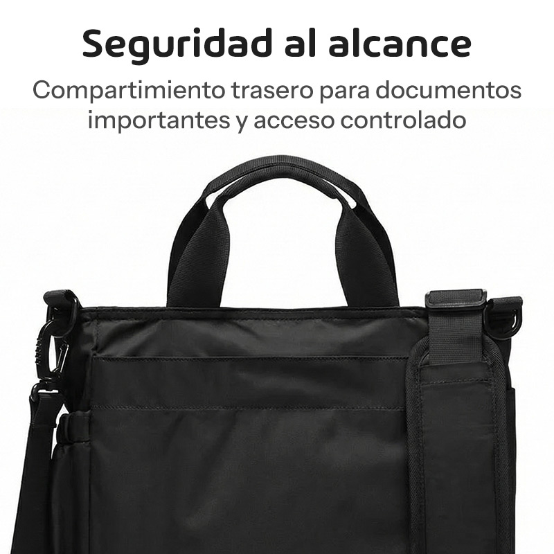 Su versatilidad es increíble. Podés llevarlo al hombro, cruzado o con las asas como bolso de mano. Las correas son ajustables y acolchadas para que puedas usarlo horas sin molestias. Es el equilibrio perfecto entre profesionalismo y comodidad.