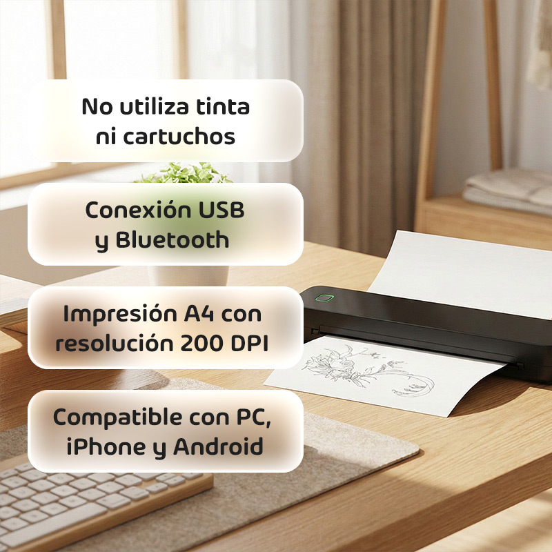 Ideal para estudiantes, oficinas pequeñas, emprendedores, profesionales móviles y hogares que buscan practicidad sin gastos de tinta.