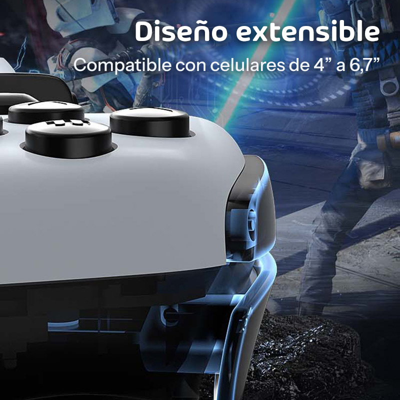 El diseño extensible es excelente: se adapta a celulares desde 4 hasta 6,7 pulgadas. Tu iPhone, Samsung, Xiaomi, Motorola o cualquier Android encaja perfectamente. La conexión Bluetooth es estable y sin delay, fundamental para juegos competitivos donde cada milisegundo cuenta.