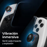 La batería dura horas de juego intenso, y cuando se agota, se carga rápidamente por USB-C. Es liviano (solo 150 g) para que no te canses en sesiones largas, pero lo suficientemente robusto para resistir la acción más intensa. Además, la vibración te sumerge completamente en la experiencia de juego.