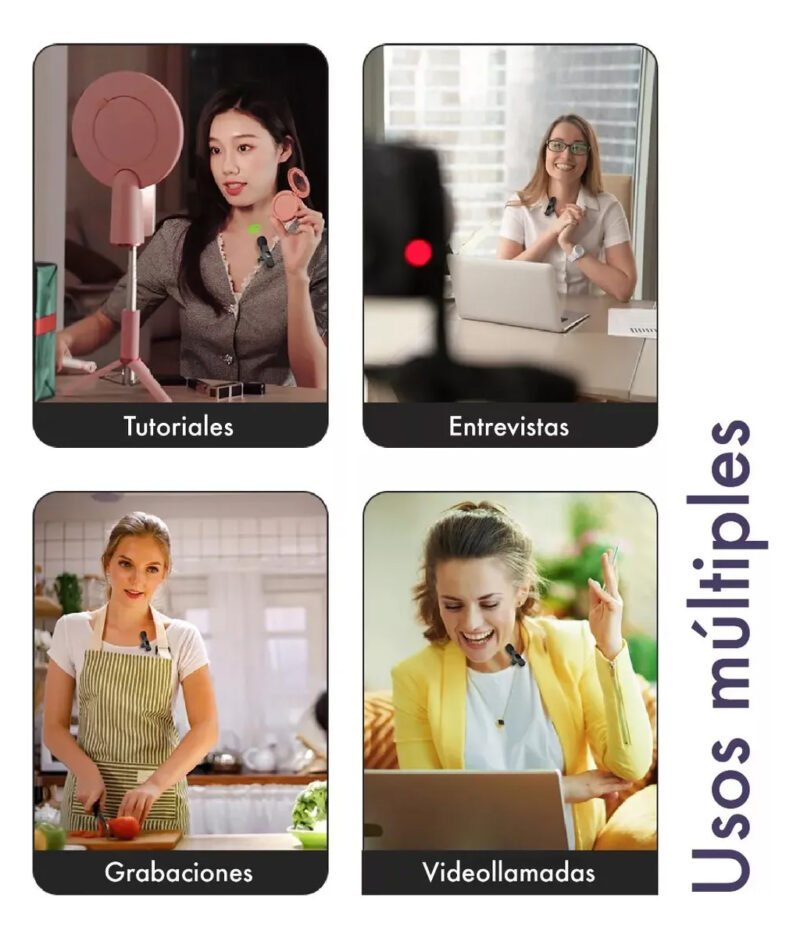 Ideal para creadores de contenido que buscan audio profesional sin complicaciones, influencers que graban reels y videos para redes sociales, docentes que producen clases online, periodistas que realizan entrevistas, podcasters que graban en movimiento, vloggers de viajes y lifestyle.