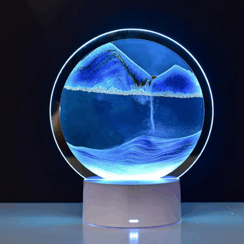 Transformá cualquier ambiente con esta increíble lámpara de arena líquida 3D que crea paisajes únicos e hipnotizantes. Cada vez que la girás, la arena se mueve creando nuevas formaciones que parecen montañas, dunas y paisajes naturales en movimiento constante.