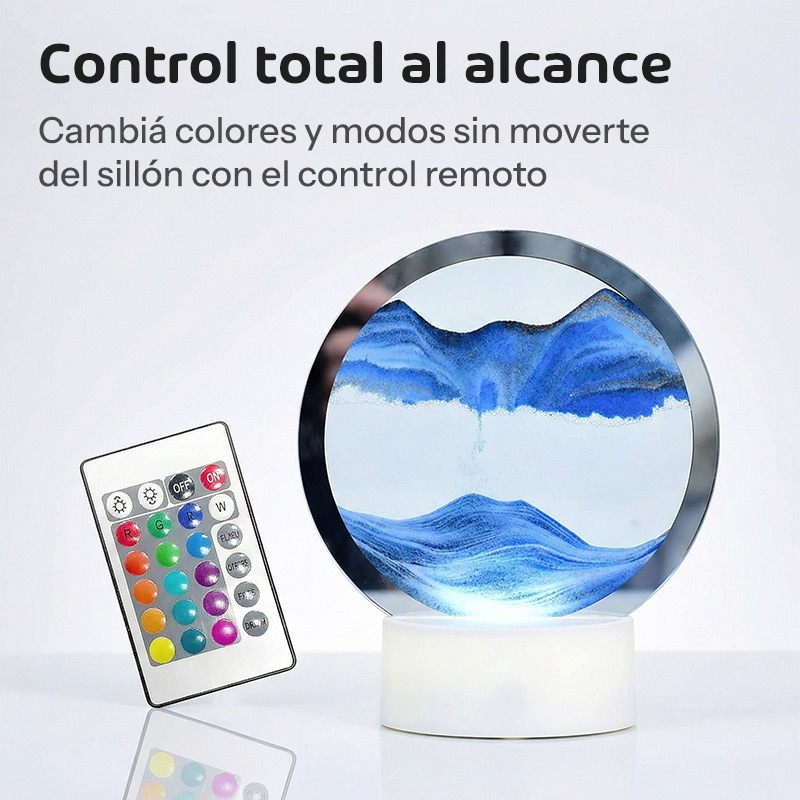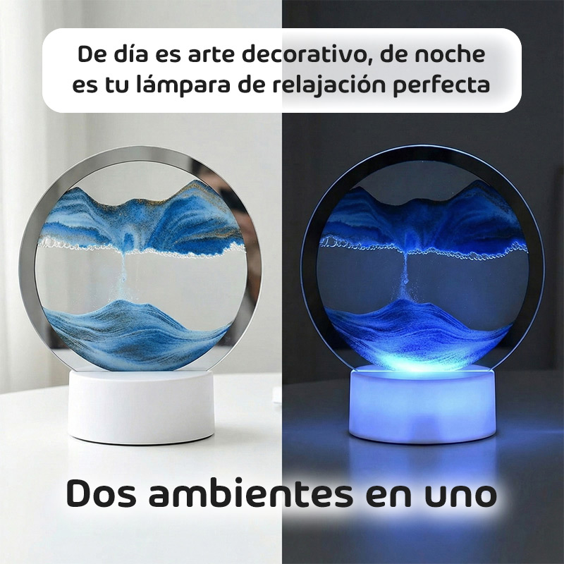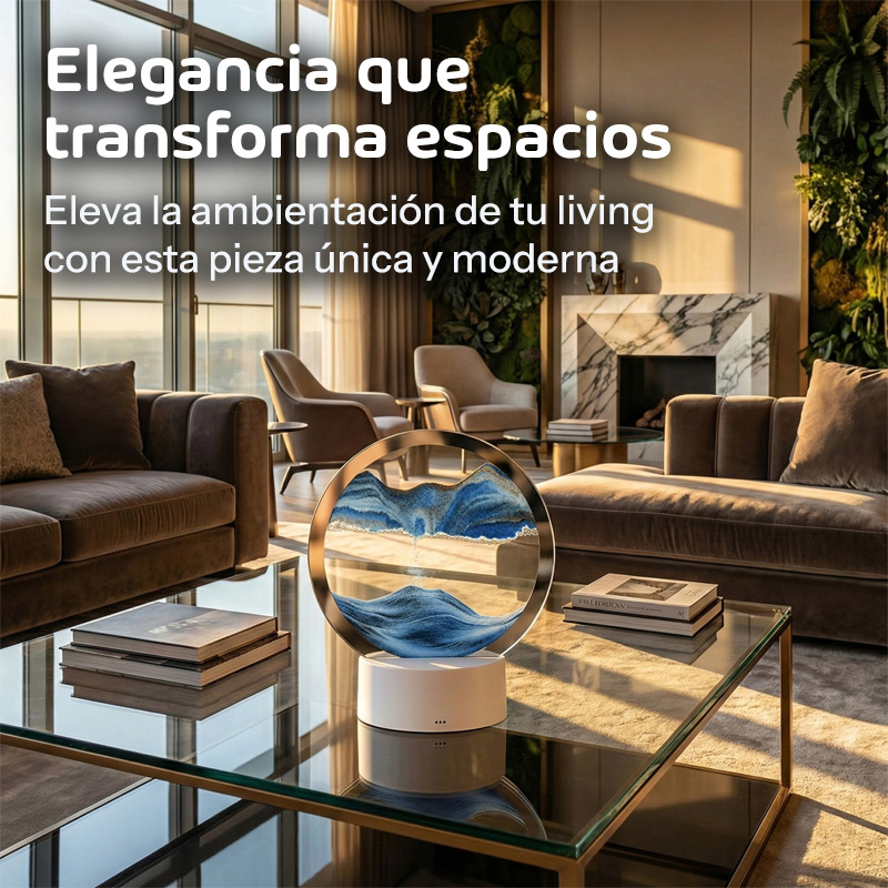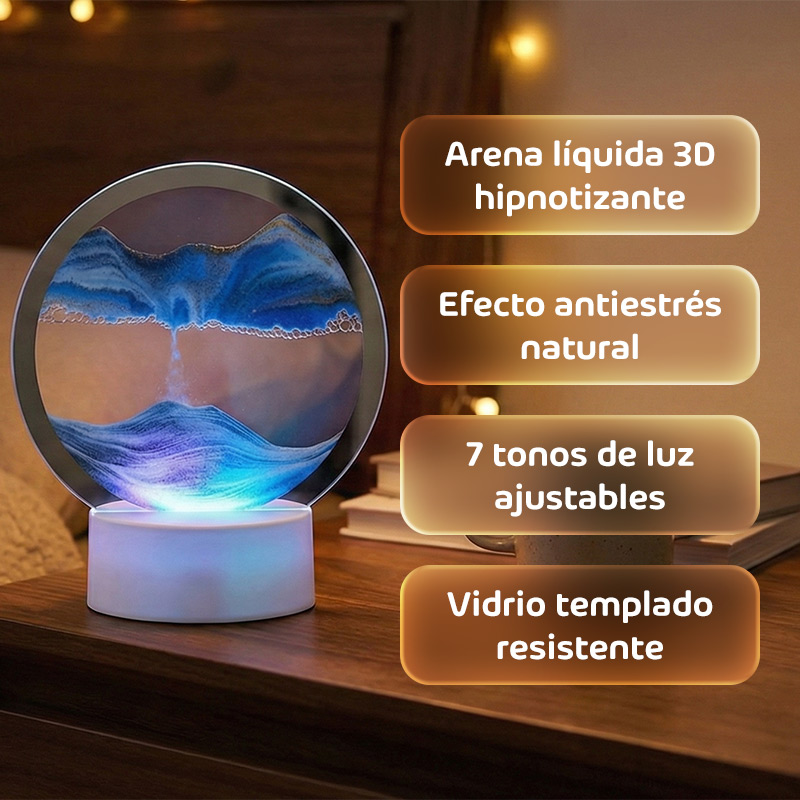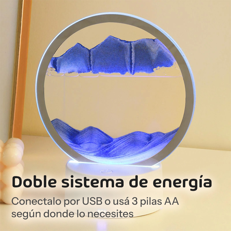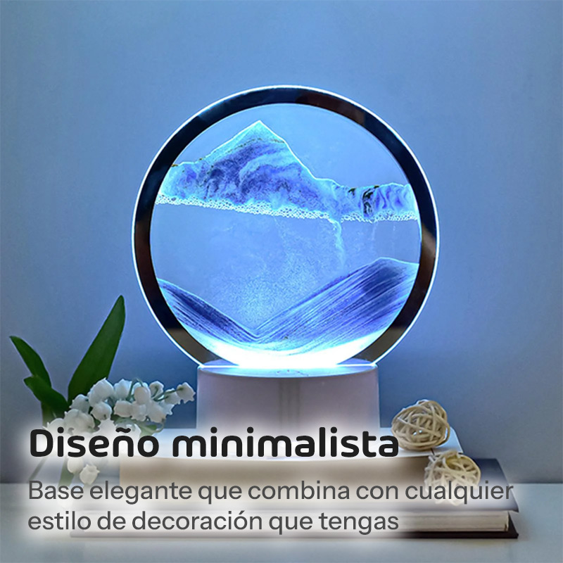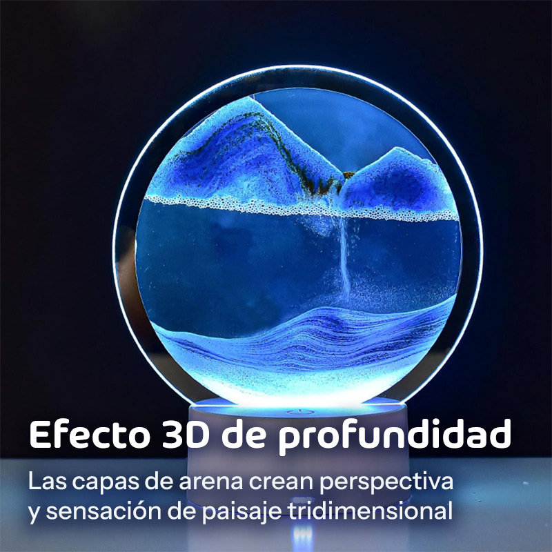 Transformá cualquier ambiente con esta increíble lámpara de arena líquida 3D que crea paisajes únicos e hipnotizantes. Cada vez que la girás, la arena se mueve creando nuevas formaciones que parecen montañas, dunas y paisajes naturales en movimiento constante.