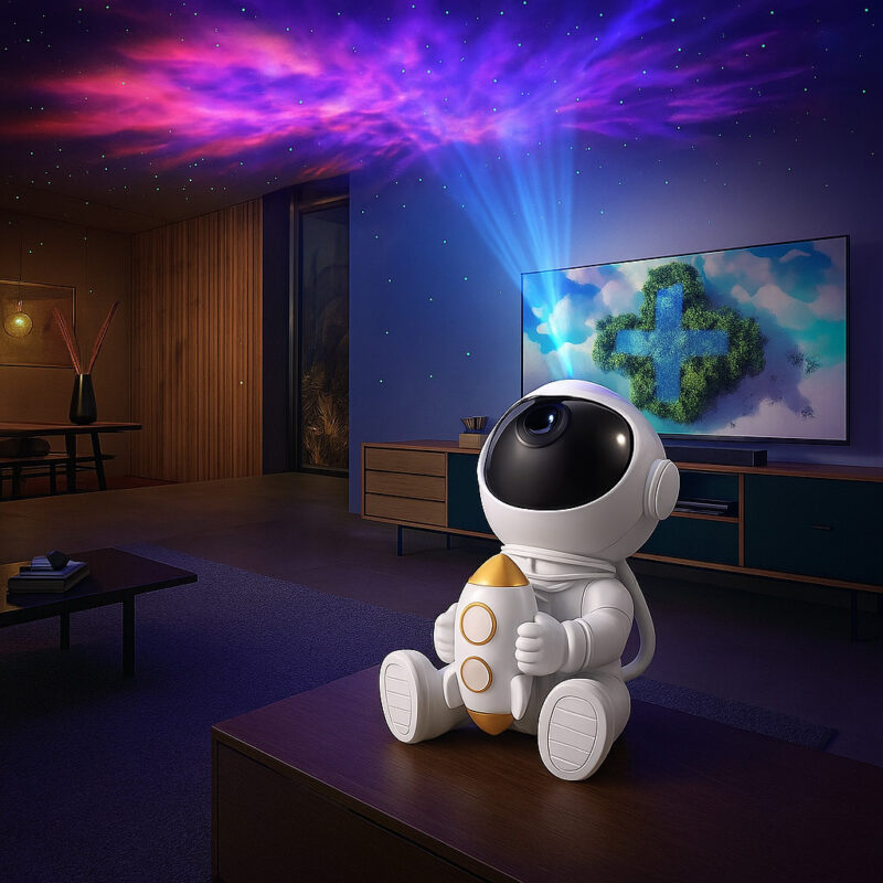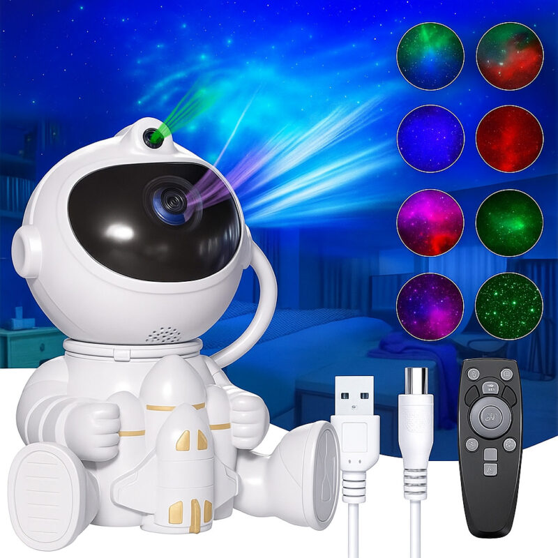 Incluye: Lámpara proyector astronauta, control remoto, cable USB-C.