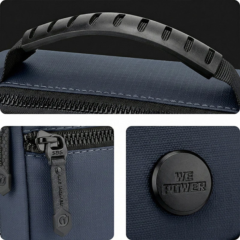 El material es de buena calidad: nylon 900D con tratamiento repelente al agua y textura tipo cuero que le da un buen acabado. Las costuras están reforzadas y cuenta con cierres SBS de alta resistencia que garantizan durabilidad por años.