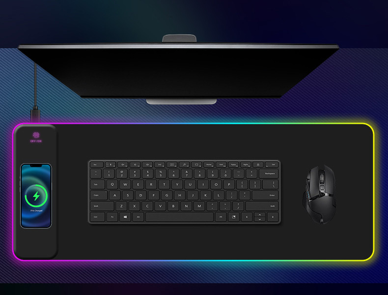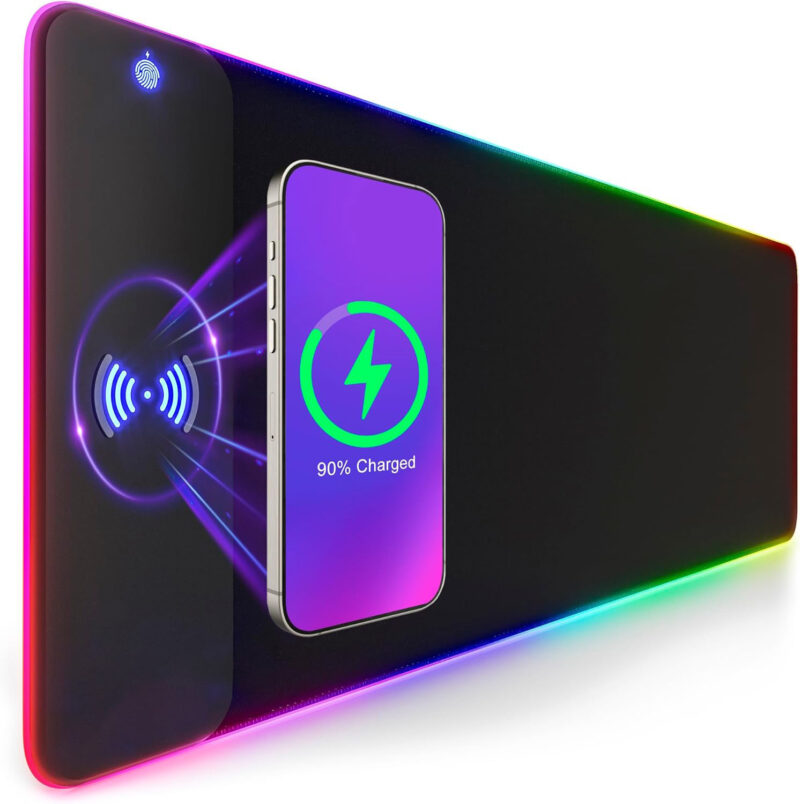 Llevá tu setup gamer al siguiente nivel con este mousepad que no solo mejora tu rendimiento, sino que también carga tu celular mientras jugás. La combinación perfecta entre funcionalidad y estilo: una superficie de juego profesional con tecnología de carga inalámbrica integrada y efectos LED RGB que van a hacer que tu escritorio se vea espectacular.