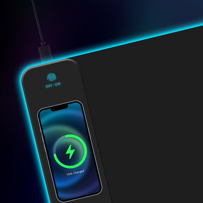 ¿Te cansaste de que se te descargue el celular en medio de una partida importante? Este mousepad resuelve ese problema para siempre. Simplemente apoyás tu teléfono compatible en la zona de carga inalámbrica y seguís jugando mientras se carga automáticamente. Sin cables, sin interrupciones, sin complicaciones.