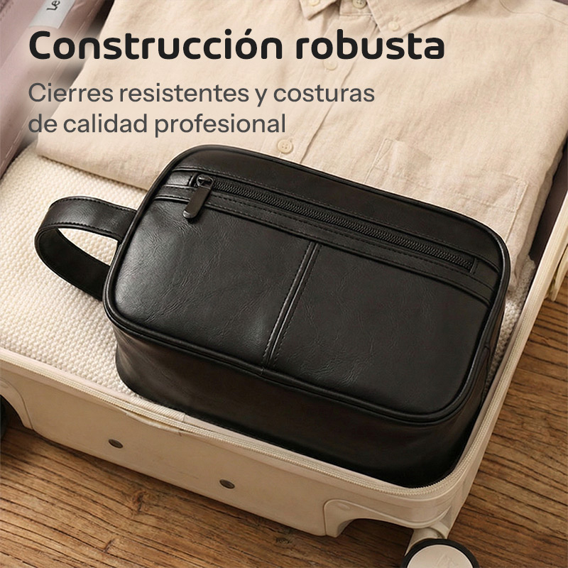 ¿Buscás algo que se vea profesional y a la vez sea súper práctico? Este neceser de cuero sintético de alta calidad te da exactamente eso. El material PU es resistente al agua, no se mancha fácil y mantiene su aspecto elegante por años. Además, el interior está diseñado con compartimientos inteligentes que mantienen todo perfectamente organizado.