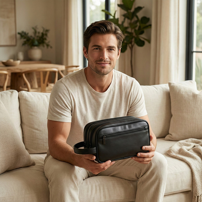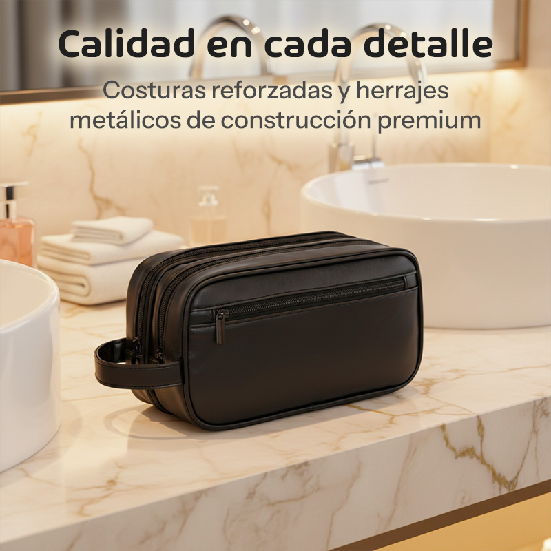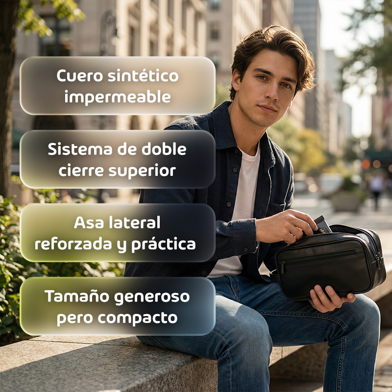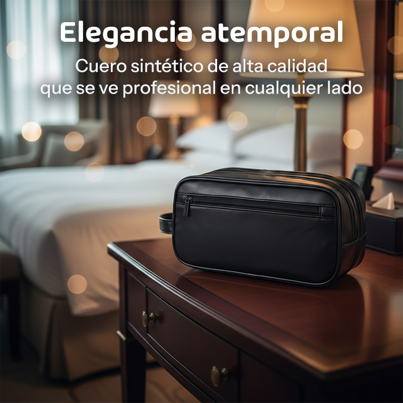 Llevá tu organización personal al siguiente nivel con este neceser premium de doble compartimiento. Este bolso toiletry de estilo ejecutivo combina elegancia atemporal con funcionalidad extrema, ideal para el hombre que busca calidad y distinción en cada detalle. Su diseño con asa lateral lo hace único y extremadamente práctico para transportar.