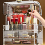 Transformá tu baño en un espacio elegante con este organizador de maquillaje transparente. Con tapa protectora y múltiples compartimentos, es la solución ideal para mantener todos tus cosméticos ordenados, protegidos del polvo y siempre a la vista.