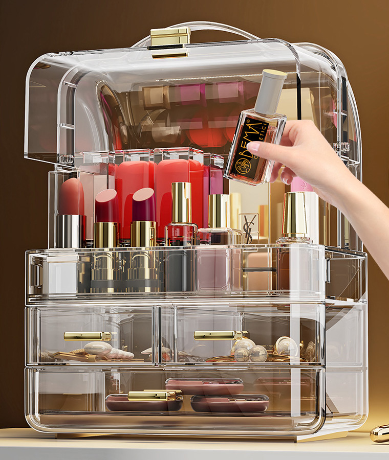 Organizador de Cosméticos Transparente con Tapa y Cajones