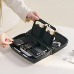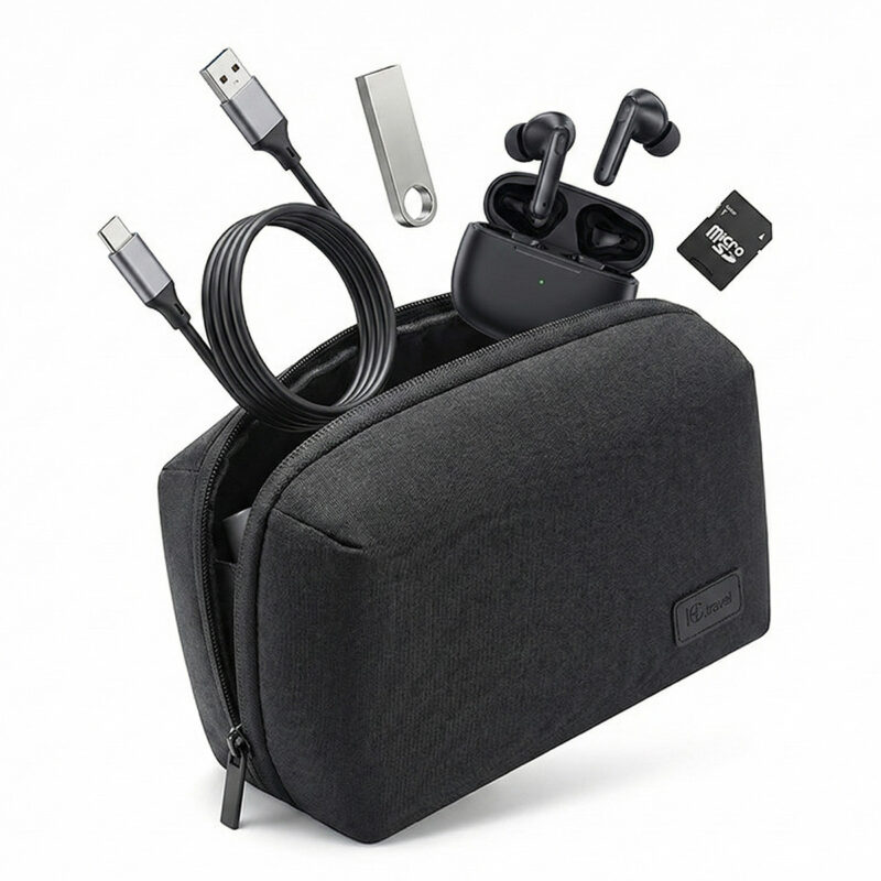 Lo mejor es que no ocupa casi nada de espacio, pero organiza una cantidad impresionante de accesorios. Es perfecto para estudiantes, profesionales que viajan, o cualquiera que use tecnología en el día a día. El asa semi-oculta le da un toque elegante y facilita el transporte.