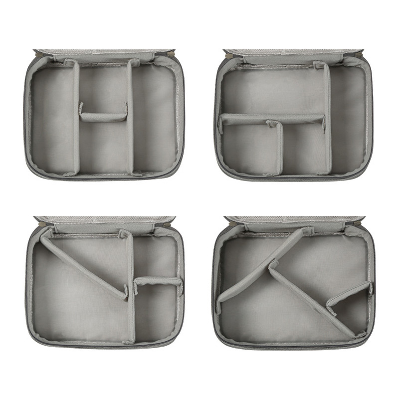 Viene con tres divisores removibles que podés acomodar como se te ocurra según lo que necesites guardar. La manija reforzada hace que sea muy cómodo de llevar, y el tamaño es perfecto para que entre en cualquier mochila o valija sin ocupar mucho espacio.