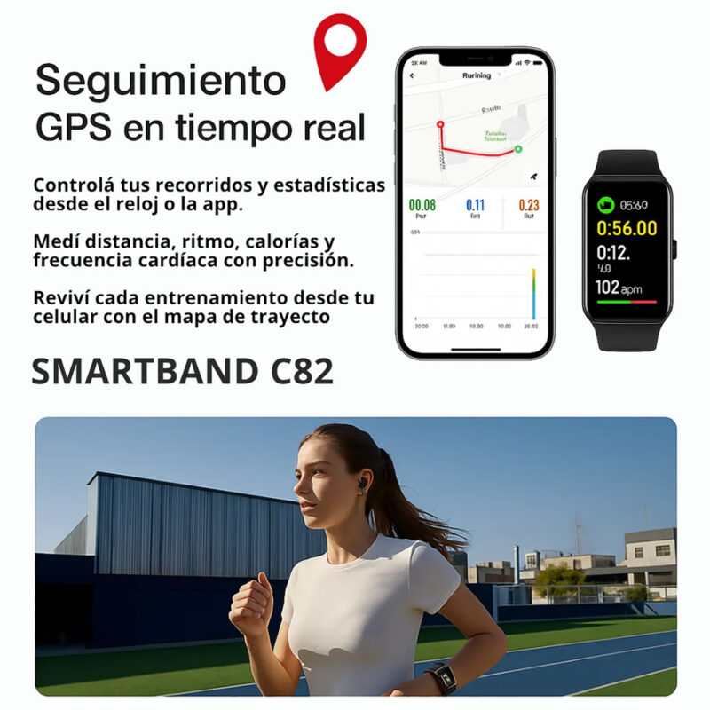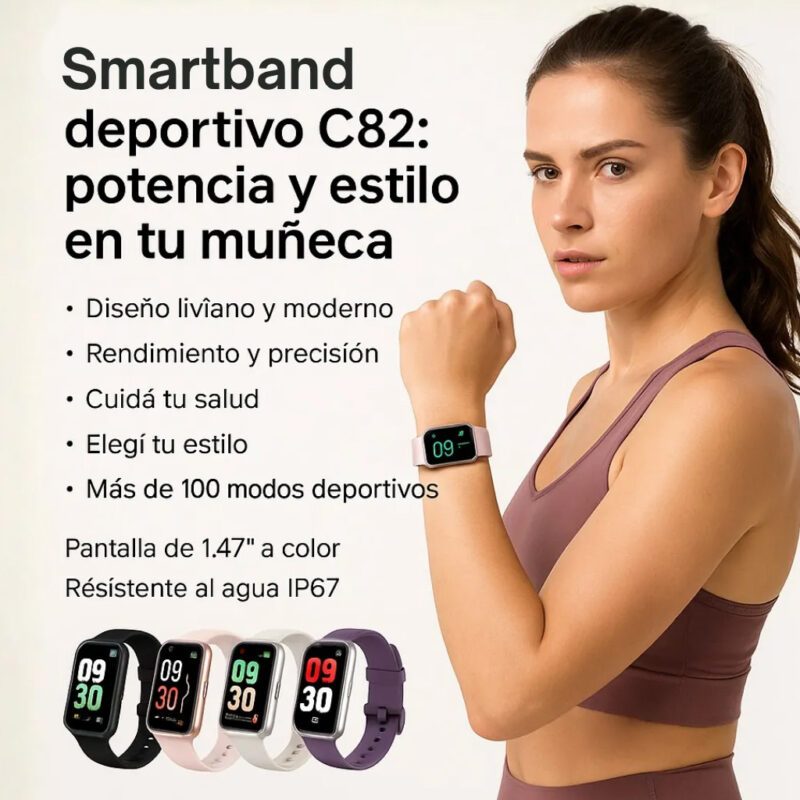 Descubrí un smartwatch completo que combina elegancia, tecnología avanzada y monitoreo integral de salud en tu muñeca. Con pantalla HD de 1,47 pulgadas, más de 100 modos deportivos, monitoreo continuo de frecuencia cardíaca, oxígeno en sangre, presión arterial y sueño, resistencia al agua IP67, y más de 200 esferas personalizables, este reloj inteligente C82 es tu compañero perfecto para mantener un estilo de vida activo y saludable.