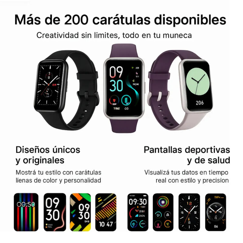 - Sensores: Frecuencia cardíaca óptica, SpO2, acelerómetro 3 ejes