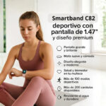 Incluye smartwatch C82, cable de carga magnética, manual de instrucciones, app Keep Health gratuita para iOS y Android.