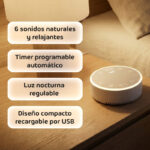 • 6 sonidos terapéuticos: lluvia, océano, bosque, relajación, calma y ruido blanco