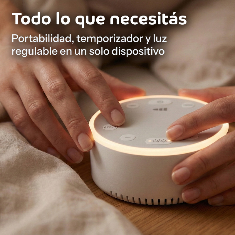 Su principal ventaja es la versatilidad. Cuenta con 3 modos de temporización (15, 30 y 60 minutos) para que se apague automáticamente cuando ya estés dormido, o podés dejarlo funcionando toda la noche. La luz nocturna tiene 3 intensidades diferentes: respiración suave, luz constante o completamente apagada, según lo que más te relaje.