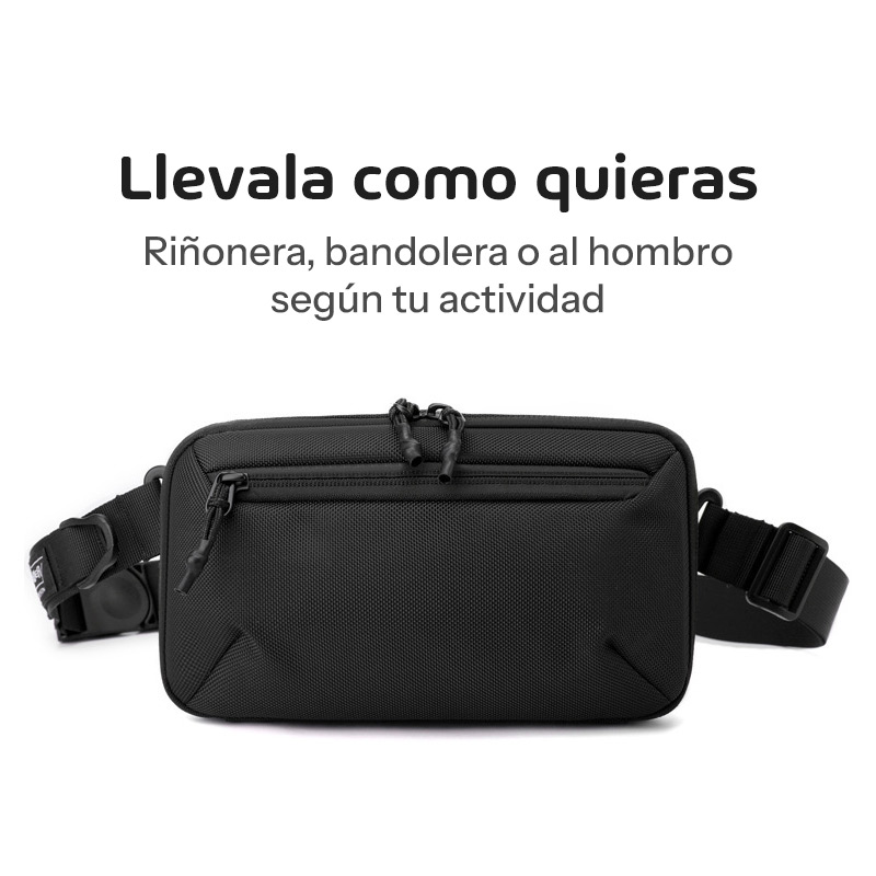 La correa ajustable se adapta perfectamente al cuerpo y podés utilizarla de múltiples formas: como riñonera clásica, bandolera cruzada, al hombro, o incluso como bolso de mano. Los materiales son de primera calidad y están diseñados para resistir años de uso intensivo.