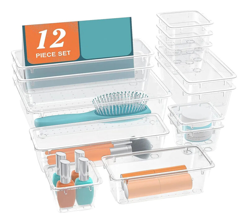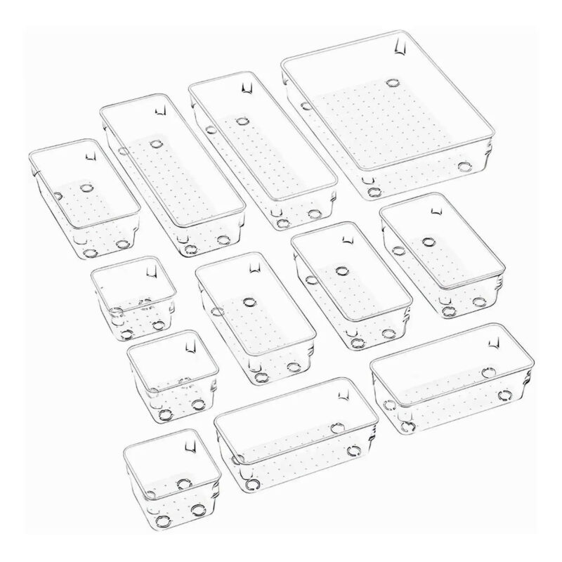 Transformá cualquier cajón o espacio con este set de 12 organizadores acrílicos transparentes. Son perfectos para tener todo tu maquillaje, productos de skincare, útiles de oficina o accesorios siempre visibles y al alcance de la mano.