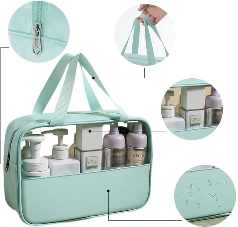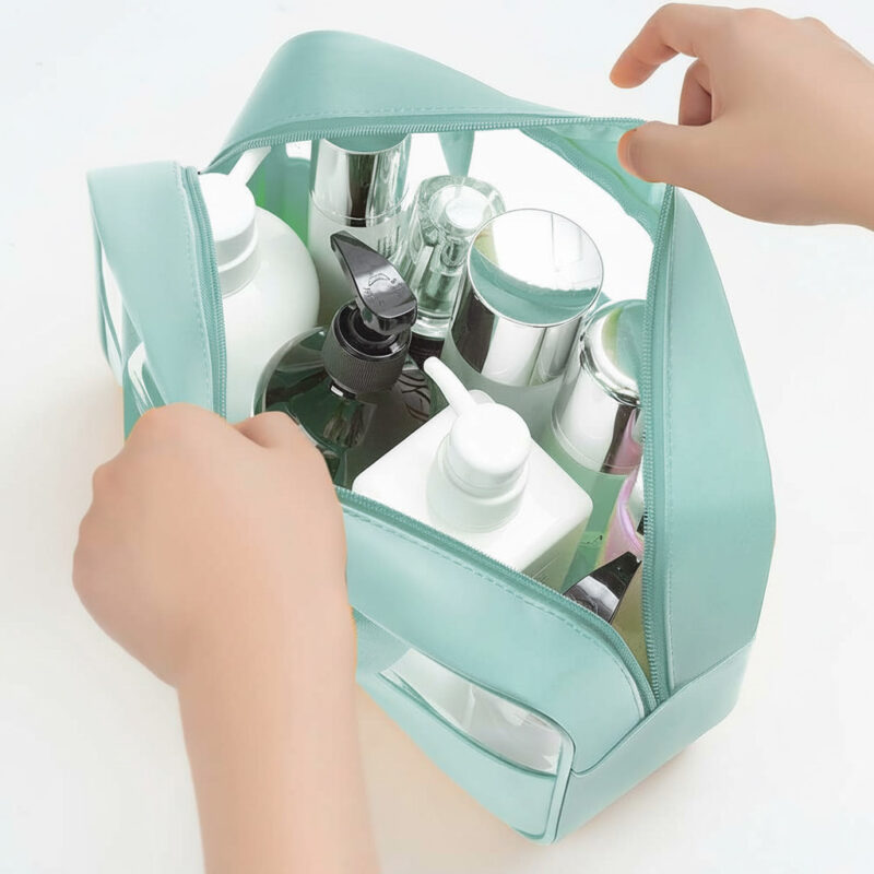 El material PVC + PU es completamente impermeable y fácil de limpiar ¿Se derramó algo adentro? No hay problema. Con una toallita húmeda queda como nuevo. Es perfecto para el baño, donde la humedad es constante, o para llevar de viaje sin preocuparte por derrames.