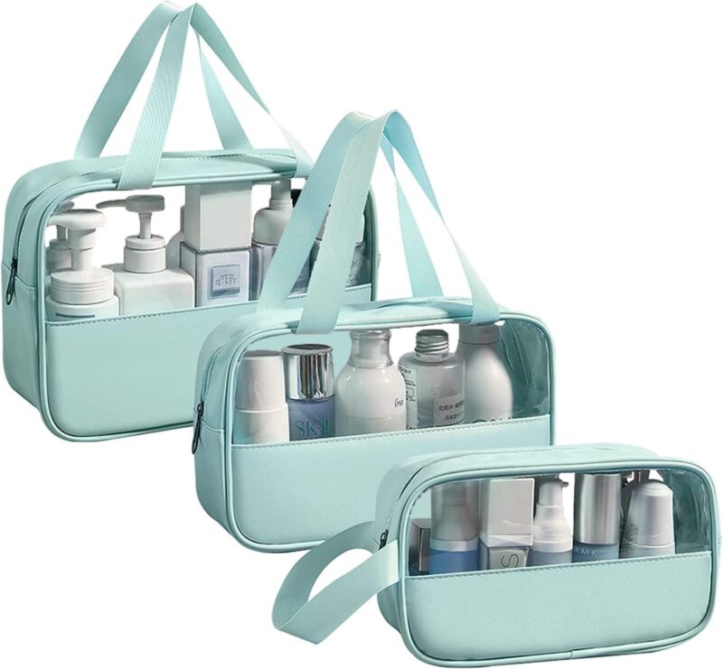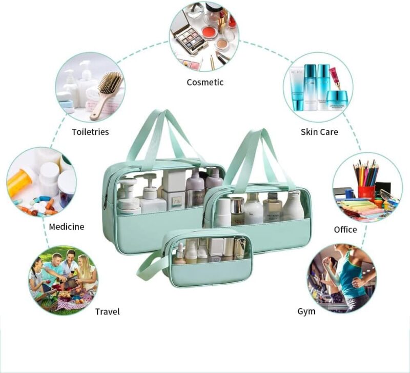 El set de organizadores que toda mujer necesita para tener sus cosméticos y productos de higiene perfectamente ordenados. Este kit de 3 piezas combina transparencia total con resistencia impermeable, ideal para quienes valoran la organización práctica y el estilo moderno.
