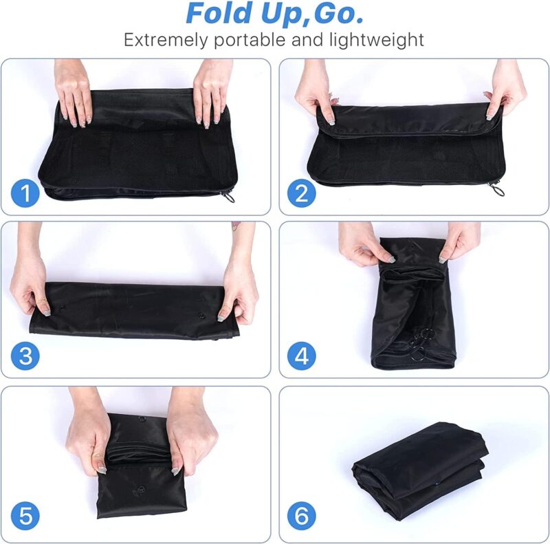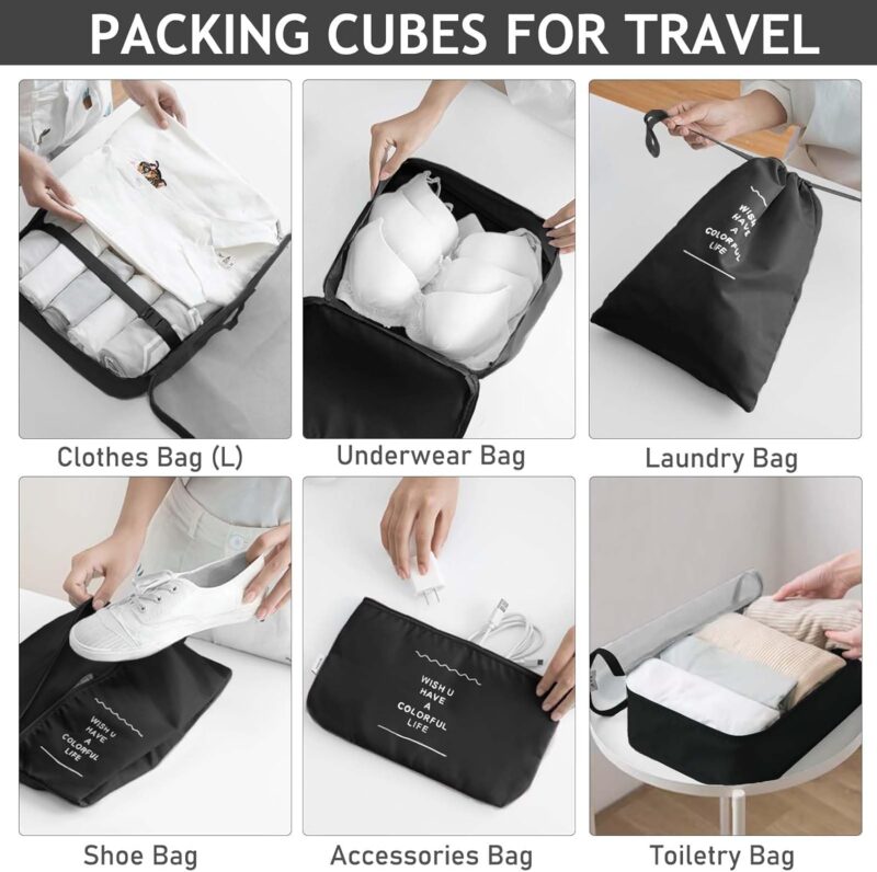 Lo mejor es que están hechos con material impermeable de alta calidad, así que si se derrama algo o llueve, tus cosas quedan protegidas. Los cierres son resistentes y las costuras están reforzadas para aguantar el uso intensivo de los viajes. Además, el diseño en color negro es elegante y no se ensucia fácilmente.